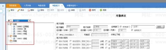 作用:可以根据班次类别设置不同的考勤班次,使得考勤明细化,便于管理