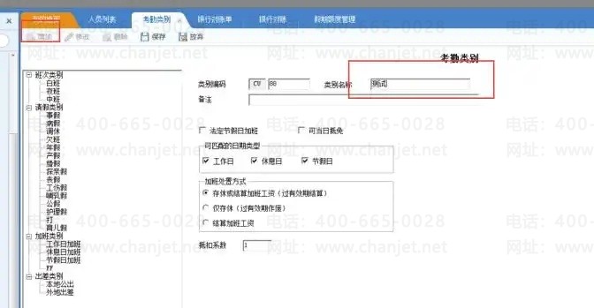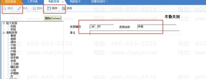 1、增加班次类别(在考勤管理-考勤设置-考勤类别里增加)