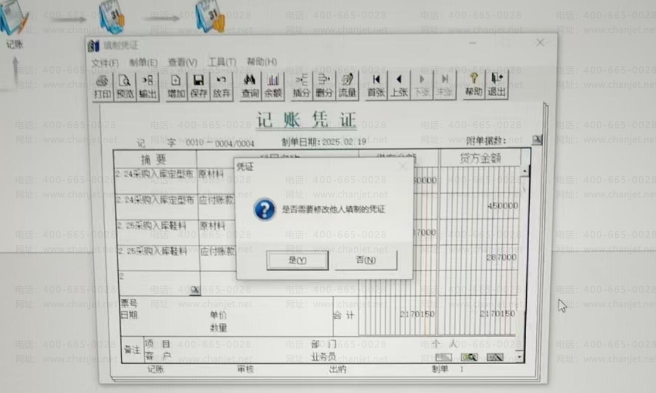 4、在弹出“是否需要修改他人填制的凭证”后,点击“是”。