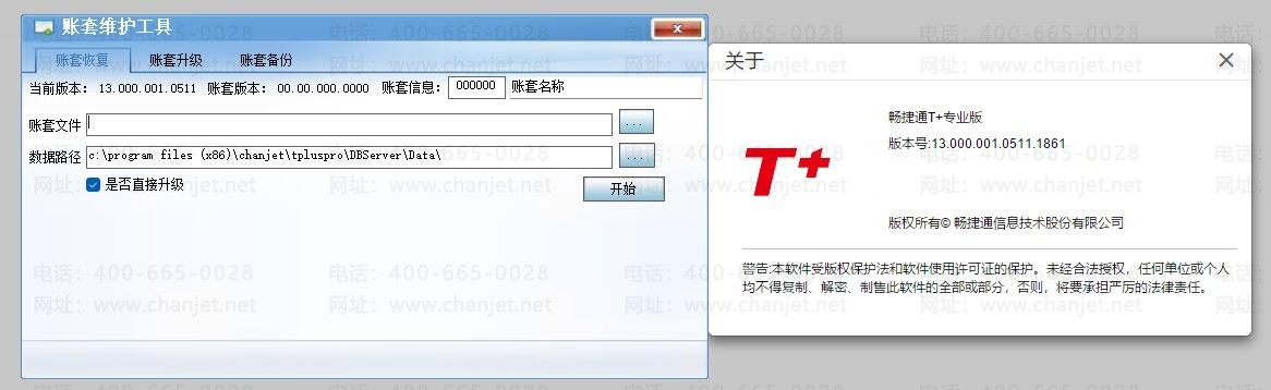 安装部署完成,显示版本号为最新;畅捷通T+专业版 版本号:13.000.001.0511.1861