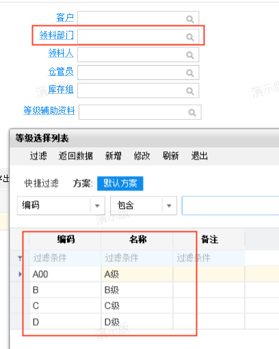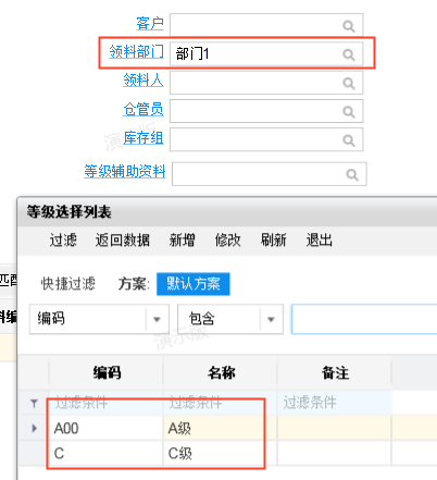 其它出库单:想针对其它出库的领用发生部门/成本中心和用途(辅助资料)进行归纳汇总;期望:当选择部门A时,用途中仅能选择部门A对应的用途;当选择部门B时,用途中仅能选择部门B对应的用途