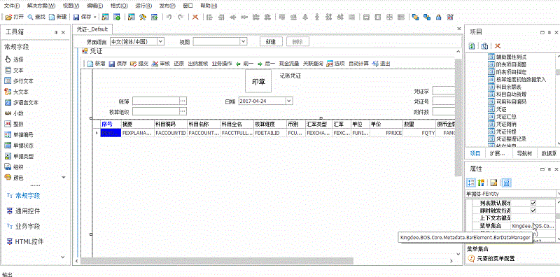 1.进入BOS设计器,扩展打开【凭证】;