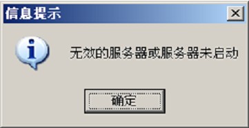 单击【连接】按钮,弹出信息提示:“无效的服务器或服务器未启动!”,如图1-02所示:
