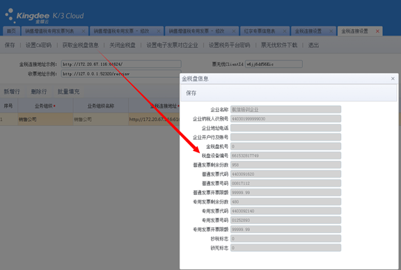 2、使用6601之后的票无忧服务程序,重新在金蝶云星空里面获取金税盘信息,目的是将金税盘的设备编号获取到金蝶云星空之中(记得点保存)