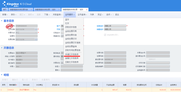 首先是在销售专用发票的业务操作下增加了相关的按钮