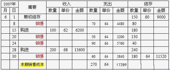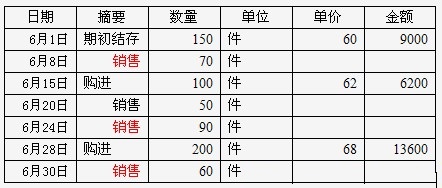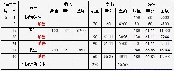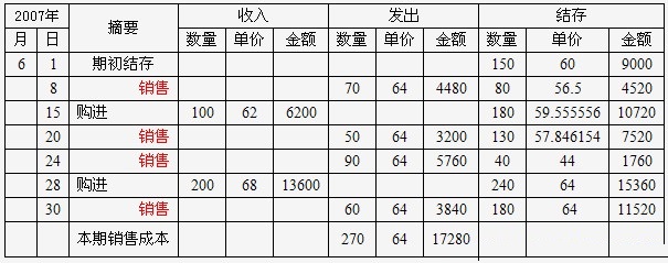 背景资料:红星工厂2007年6月A商品的期初结存和本期购销情况如下: