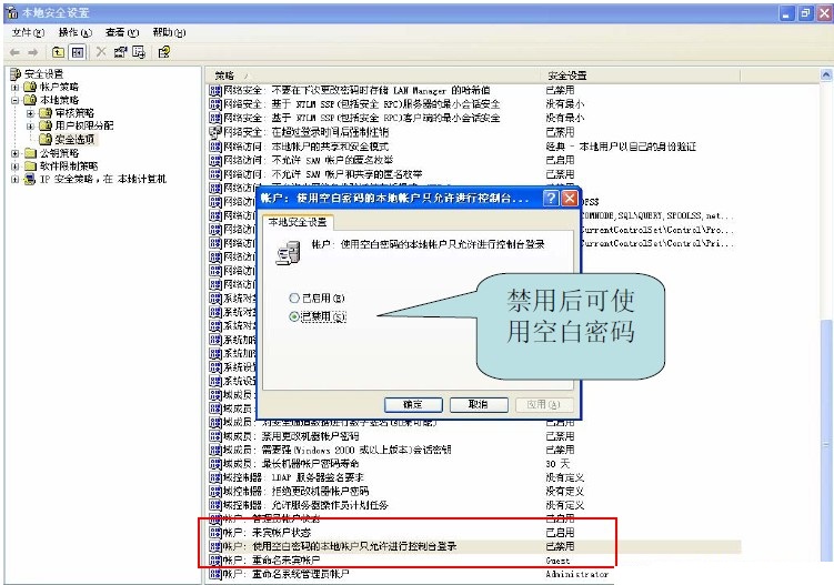 本地策略-安全选项中,将“账户:空白密码的本地账户只允许进行控制台登陆”禁用。