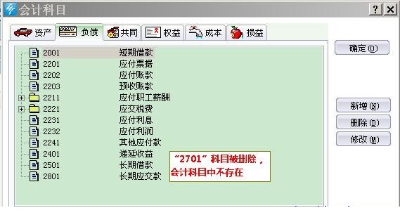 查看上图的报表公式可知,“长期应付款”报表项目为<2701>+<2801>,但是会计科目中却没有2701科目