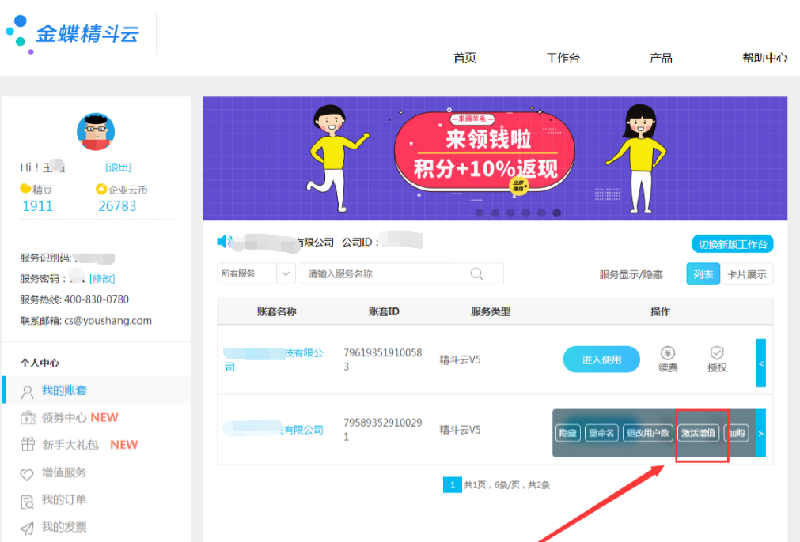 已经购买零售模块的微信增值服务,点击进去仍提示需要购买,这种情况需要先激活。返回工作台界面,点击我的账套,找到账套的增值服务,选择购买的服务点击激活即可。