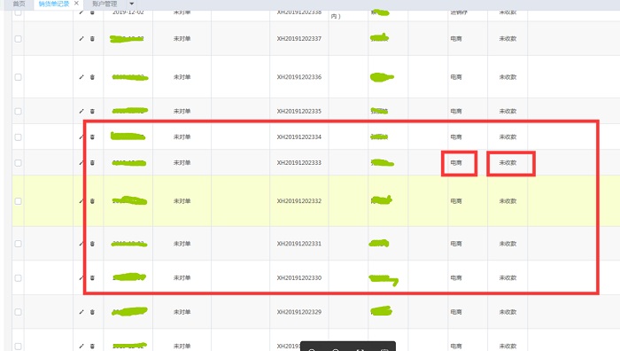 1、在电商界面,电商带出的销货单是未收款状态