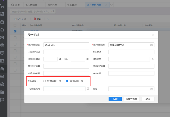 新增当前计提:表示本期新增的固定资产卡片本期计提折旧,清理当期不会计提折旧;