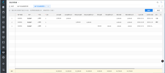 (2)可以根据业务发生时间分别录入应收金额、其他应收金额、预收金额明细数据。录入完成【保存】即可。