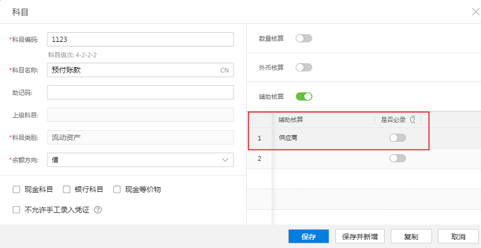 1、科目:预付账款可以设置辅助核算-供应商