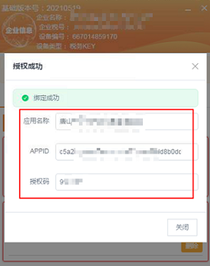 3.复制生成的授权码发给客户,客户在【账无忧发票管家】这个软件中填写好后,即绑定成功
