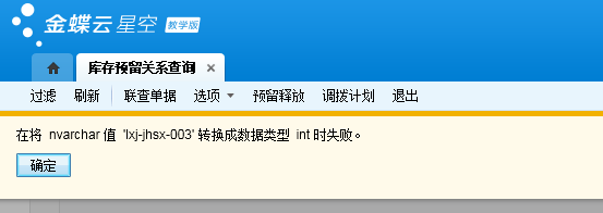 关于金蝶云星空库存预留关系查询如何配置基础资料属性