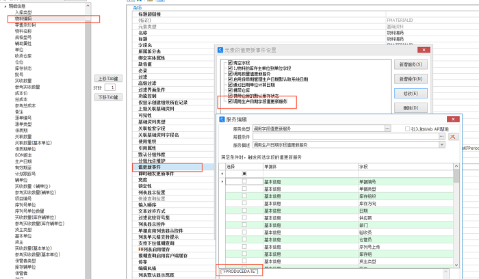 2、物料编码配置值更新,触发"生产日期"值更新事件