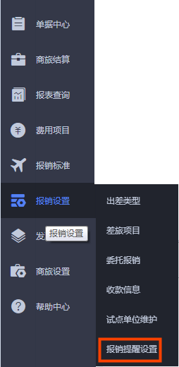 • 报销提醒设置界面: