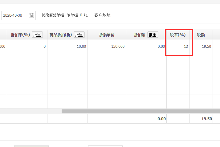 2、在单据里面录入税率