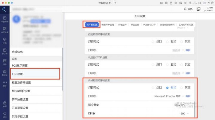 1. 商城标签打印机设置