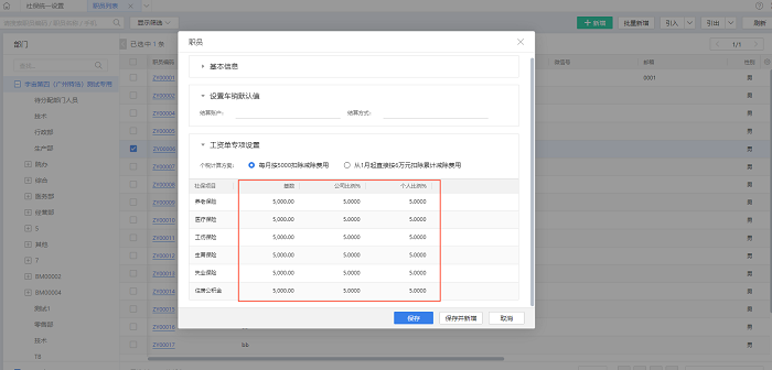 查看工资管理-社保统一设置中,已经有社保基数及扣缴比例了,但是录入工资单选择职员后,还是没有带出社保金额