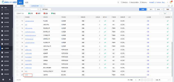 1)系统设置-打印模板-工资管理-工资单-选择内置的打印模板复制一个打开进行修改