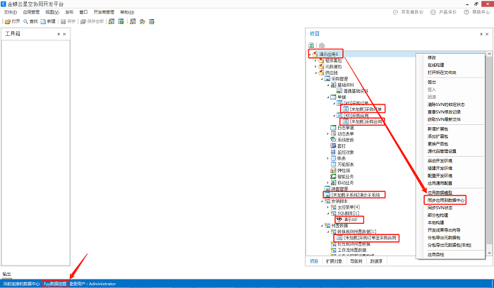 执行"同步应用到数据中心",就可以将应用的数据同步到当前的应用中心了: