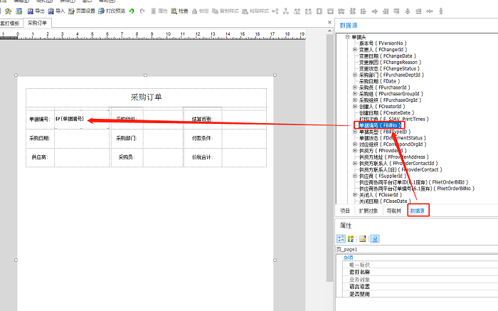 右侧选择数据源,找到需要绑定的字段,拖拽到布局控件中的文本控件上,文本会根据单据上的字段在打印时动态地显示。