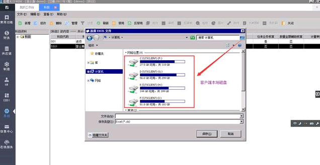 使用异速联远程,K/3中引出引入如何选择到客户端本地的磁盘