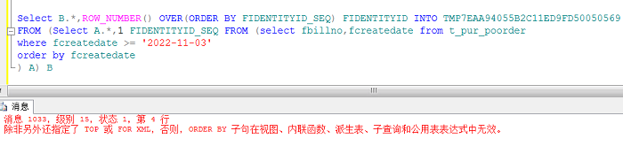 金蝶SQL账表常见问题:ORDER BY 子句在视图、内联函数、派生表、子查询和公用表表达式中无效