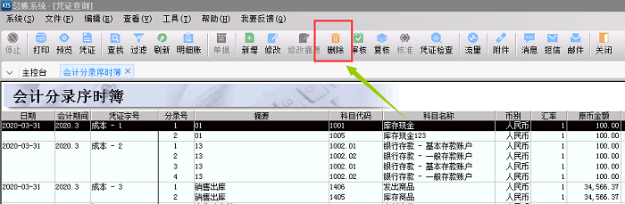 注意:凭证需要是未审核未过账的情况才能删除,若是已经审核过账了需先反过账反审核。
