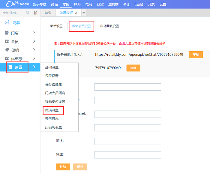 除了在设置-微信设置里面配置好,还需要在进销存设置-设置-支付设置里面配置好信息