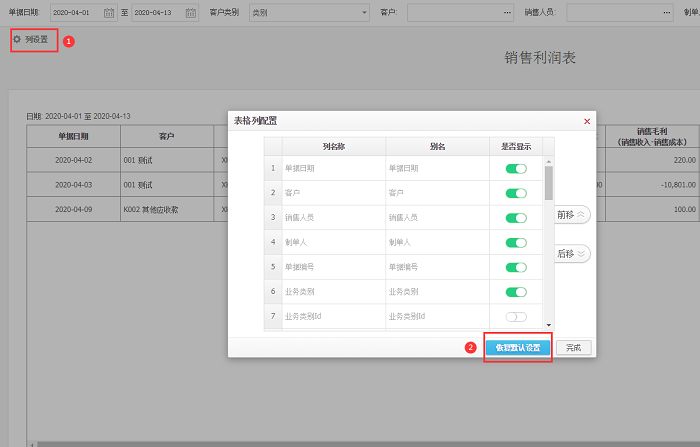 设置销售利润表列设置,恢复默认设置,之后能正常显示