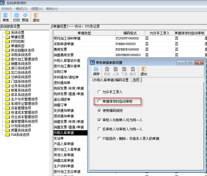 可以,需要做以下设置:【系统设置-单据设置】,选择某个单据类型,勾选“单据保存时自动审核”,