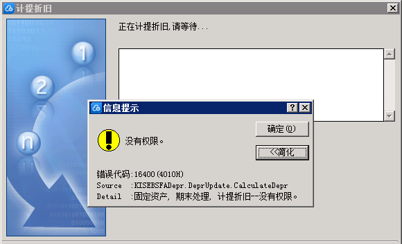 金蝶专业版计提折旧提示没有权限?