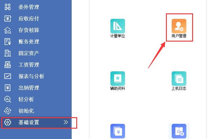 1、用管理员用户登录专业版主控台,双击【基础设置】—【用户管理】,进入用户管理界面;