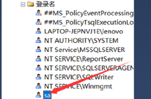2、找到【登录名】选项,并找到【sa】这个账户。
