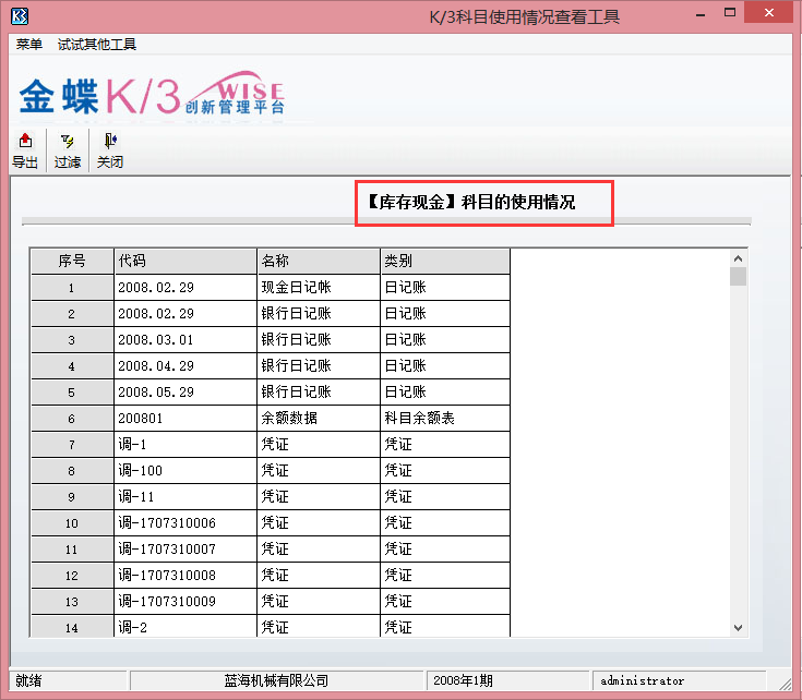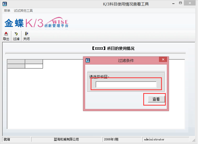 (使用K/3科目使用情况查看工具):