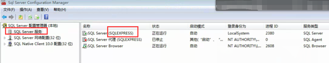 2.再打开电脑-【开始】 -【所有程序】里找到【Microsoft SQL Server 2008】-【配置工具】-【SQL Server 配置管理器】-【SQL Server服务】,看一下数据库名称(如SQLEXPRESS)