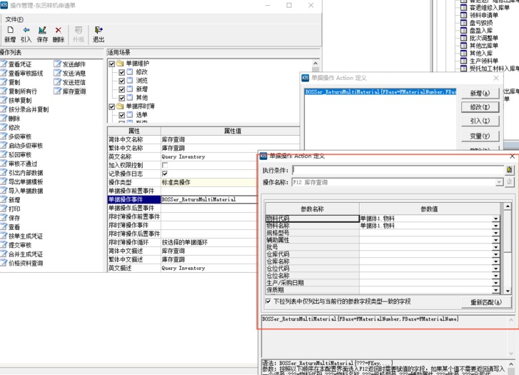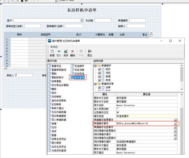 在操作管理中 - 库存查询需设置F12库存查询的单据操作事件。