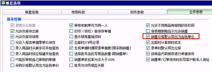 商贸系列如何设置销售单据上带出的单价为含税单价?