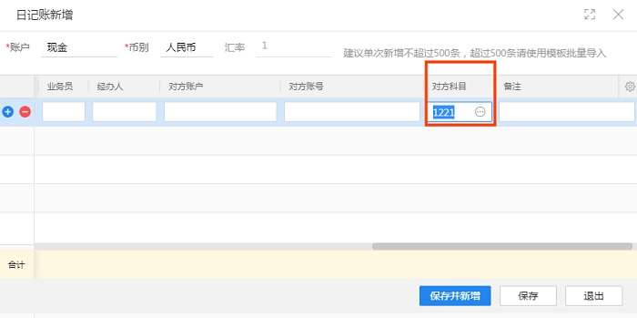 出纳日记账生成凭证的对方科目,通过出纳日记账界面添加。