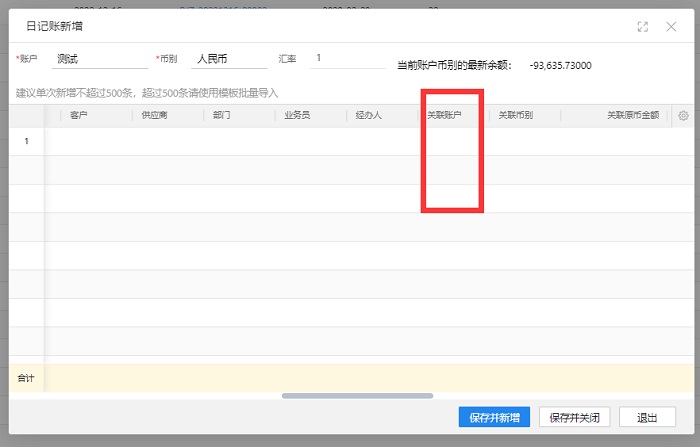 日记账新增时,没有关联账户字段录入,查看列设置关联账户字段是显示的