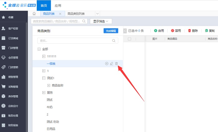 如何删除金蝶云星辰商品类别?商品类别中有商品信息不能删除怎么办?