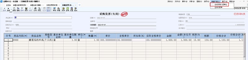 2、选择对应的采购发票,点击右上角【下推】选择【生成 采购入库单】或者双击打开对应采购发票后,点击右上角【单据下推】→【生成采购入库单】。