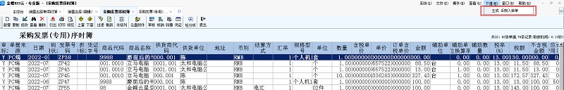 1、登录专业版主界面,鼠标左键【采购发票序时簿】设置对应的过滤条件打开后,进入“采购发票序时簿”界面;