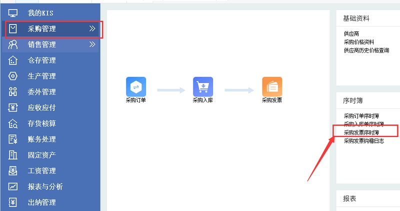金蝶KIS专业版采购发票怎么下推采购入库单?