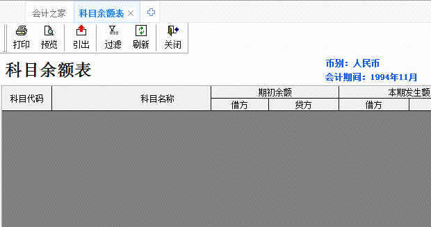 kis迷你版/标准版科目余额表勾选'包括未过账凭证'时查询没有记录,且会计期间是1994年。