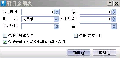 包括未过账凭证:该选项用于选择在输出会计科目余额表时,是否要将未过账凭证的数据一并输出,如选择此项则同时输出未过账凭证的数据。