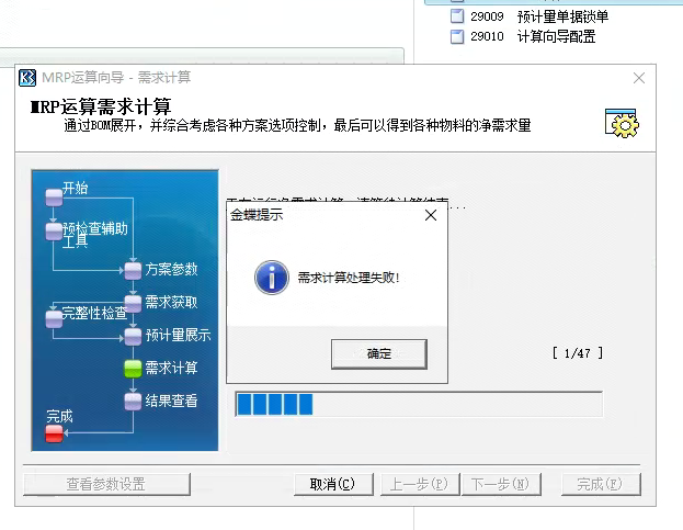 K3单台客户端mrp运算报错,提示需求计算处理失败!