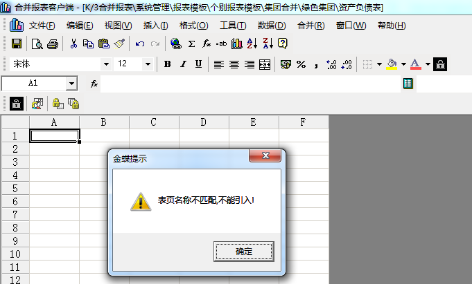 新建k3软件个别报表模块引入报表模块kds格式的资产负债表时,提示“表页名称不匹配,不能引入”?